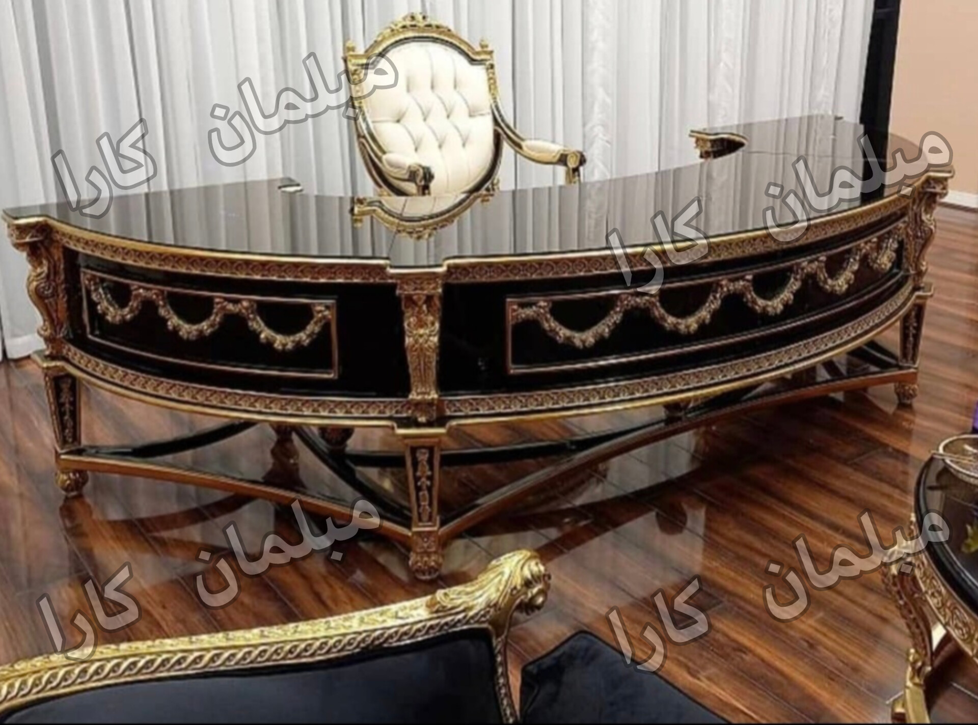 میز مدیریت منبت نیم گرد مدل کارا چوب راش